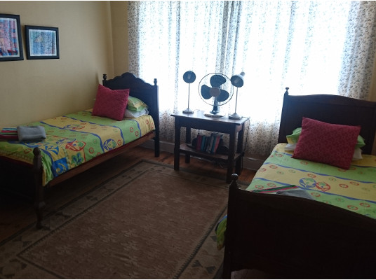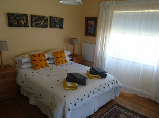 It is the perfect setting to get away from the hustle and bustle of city life and restore your energy-you can take a walk along the beach, swim, surf or relax in the garden. The family friendly spacious rooms and serene garden offer peaceful self-catering for 4- 5 people. It is close to shops and other facilities.